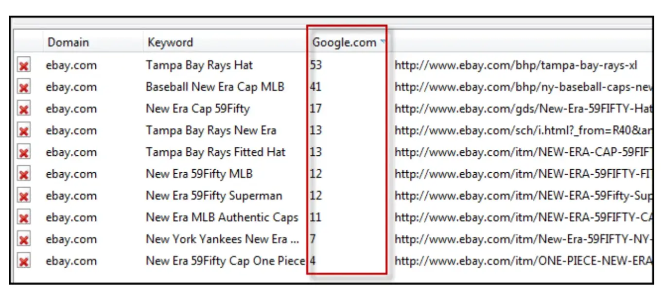 The previous figure illustrates, based on a random sample of non-branded long-tail keywords that eBay previously targeted, that 80% of them are no longer on the first page, despite relatively low competition for these highly targeted queries.