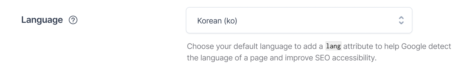 Choose your default language to add a lang attribute to help Google detect the language of a page and improve SEO accessibility.