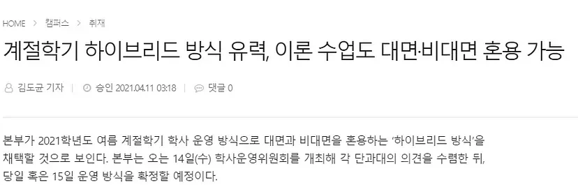 코로나19가 창궐한 지 벌써 2년 째, 많은 학생들이 학교와 교실 대신 집에서, 그리고 칠판, 선생님, 친구들 대신 컴퓨터만 바라보고 있습니다. 백신 접종으로 곧 교육이 정상화될 것이라는 조짐도 하나 둘 보이고 있습니다. 서울대학교는 오는 2학기부터 대면 수업을 재개할 방침이며, 이번 계절 학기에는 하이브리드 방식 수업을 마련하겠다고 공지를 하기도 했습니다.