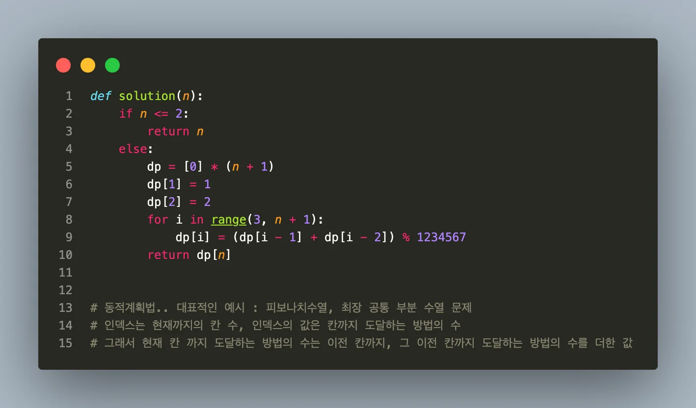 동적계획법 문제인 멀리 뛰기를 풀어보았습니다. (레벨2/ 정답률 68%)