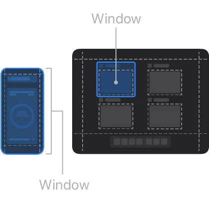 예를 들어, iOS and watchOS에서는 하나의 Scene을 표시하고 macOS and iPadOS에서는 여러 Scene을 표시하도록 앱을 디자인할 수 있습니다.