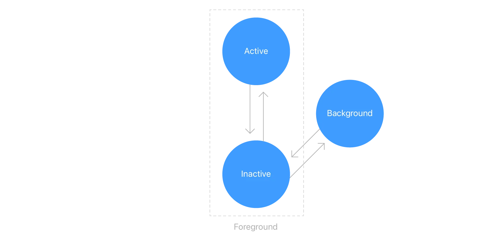 inactive - scene이 표시되지만 시스템에서 scene과의 상호작용을 비활성화했습니다. 예를 들어 멀티태스킹 모드에서는 앱의 패널을 다른 패널과 함께 볼 수 있지만 활성 패널이 아닙니다.