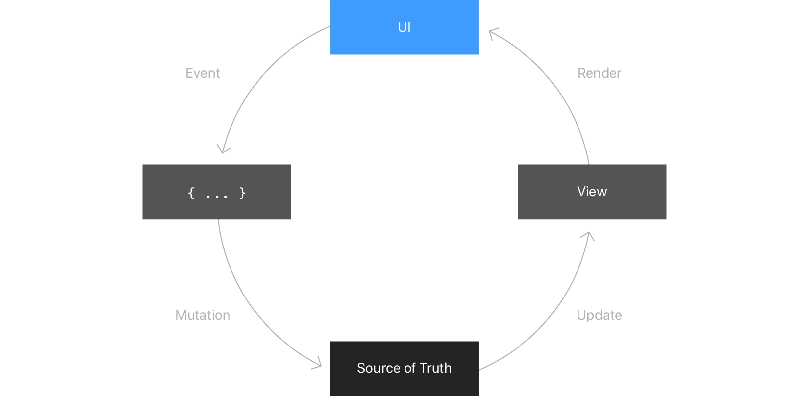 아래 다이어그램은 사용자가 시작한 이벤트 또는 앱 상태 변경에 대해 SwiftUI가 응답하는 방식을 나타냅니다.
