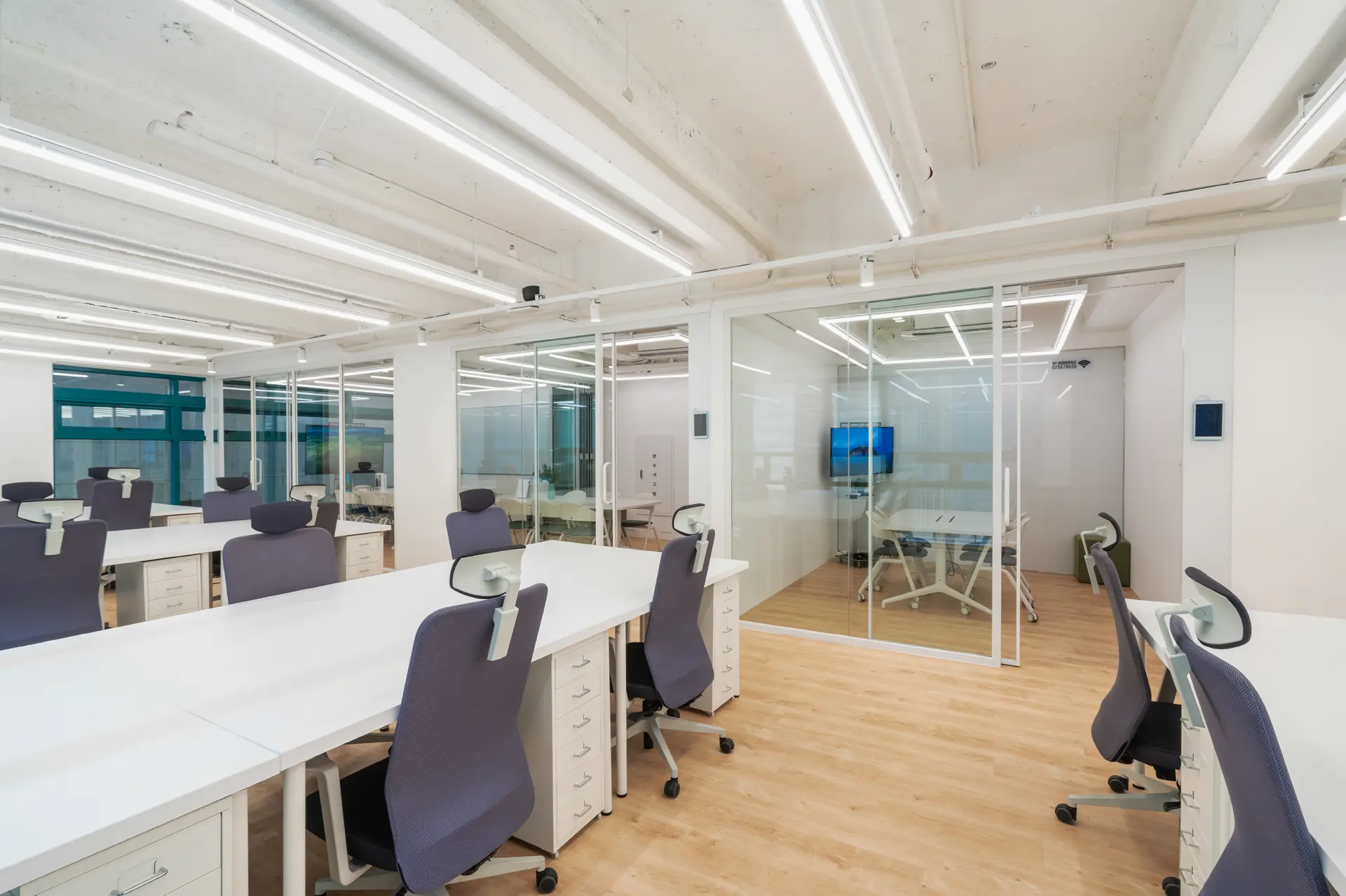 투명 유리 파티션을 활용해 회의실과 사무 공간을 가볍게 구분해 두었지만, 탁 트인 느낌은 그대로 살렸어요. 확장형 디자인 덕분에 인원이 많아져도 편하게 회의를 진행할 수 있습니다.