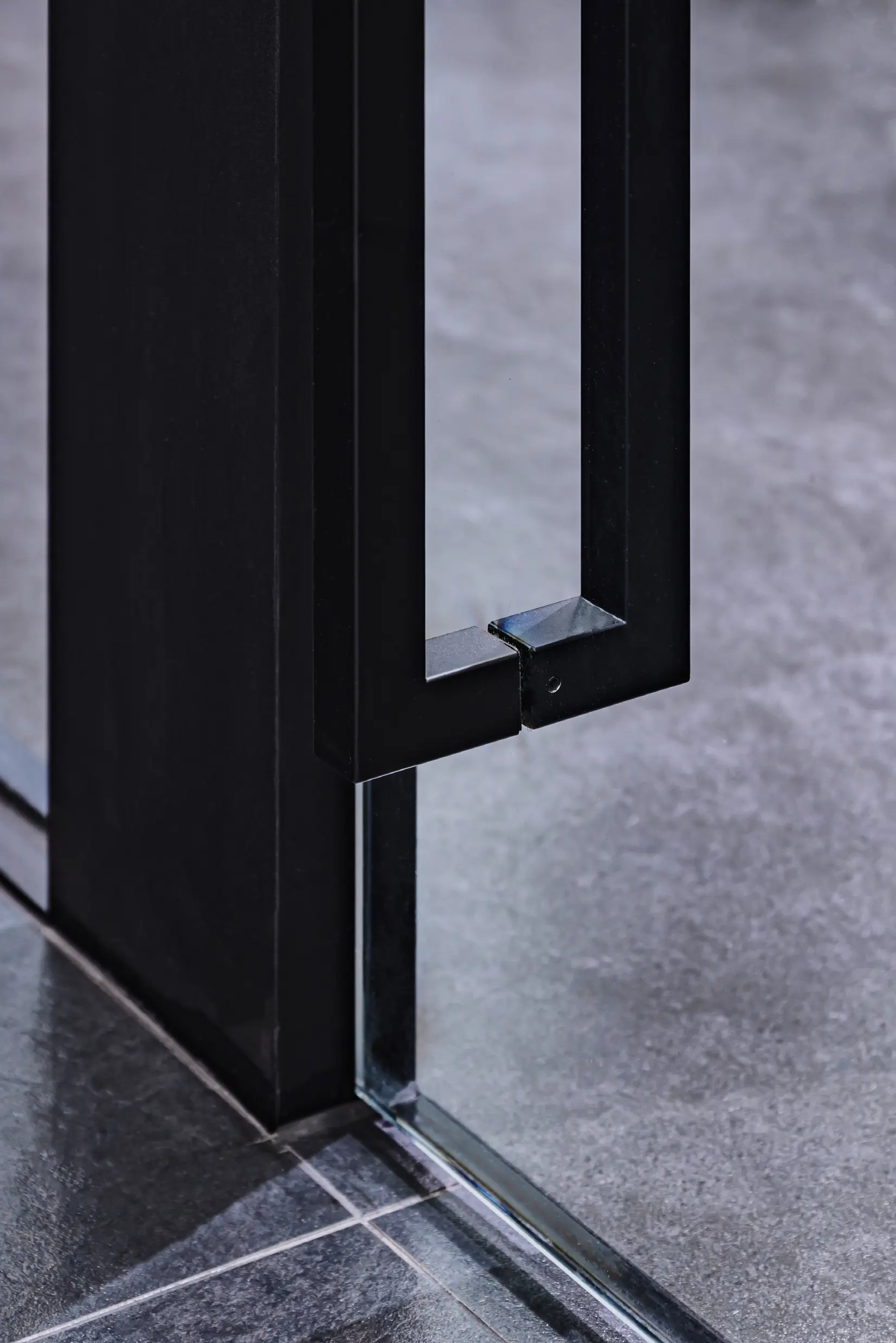 퍼솔켈리코리아 오피스의 로비는 인포데스크, 라운지, 회의실로 구분 되어있어요. 인포데스크는 검정색 대리석 마감되어 있고, 아래쪽에 간접 조명이 설치되어 있어 고급스러움을 더 했어요. 뒤로 이어지는 라운지는 천장, 바닥, 벽 모두 블랙 컬러로 마감하였고, 회의실 프레임 또한 블랙 컬러로 마감해 깊이있는 공간을 만들었어요.