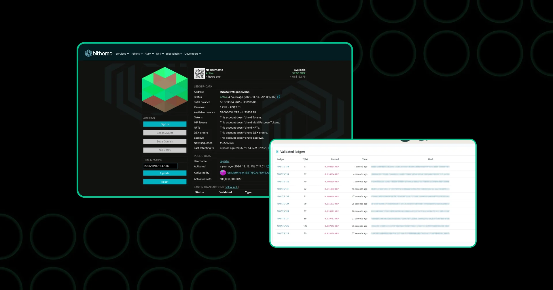 블록체인 네트워크(예시: XRP Ledger)에서 발생하는 지갑 주소, 토큰 발행, 전송 등 다양한 활동을 조회하고 추적할 수 있도록 돕는 도구입니다. XRP Ledger에서는 XRPSCAN, bithomp가 대표적으로 사용됩니다.