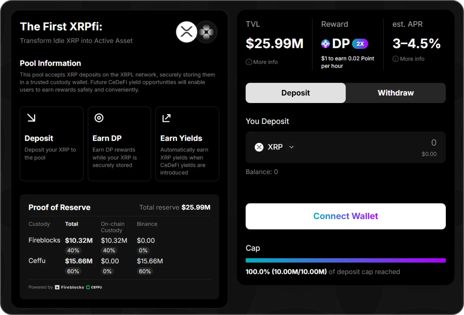 XRPfi는 $XRP와 XRPL 생태계 내 자산을 활용하여 수익을 창출할 수 있는 다양한 기회를 제공하는 것을 의미합니다.