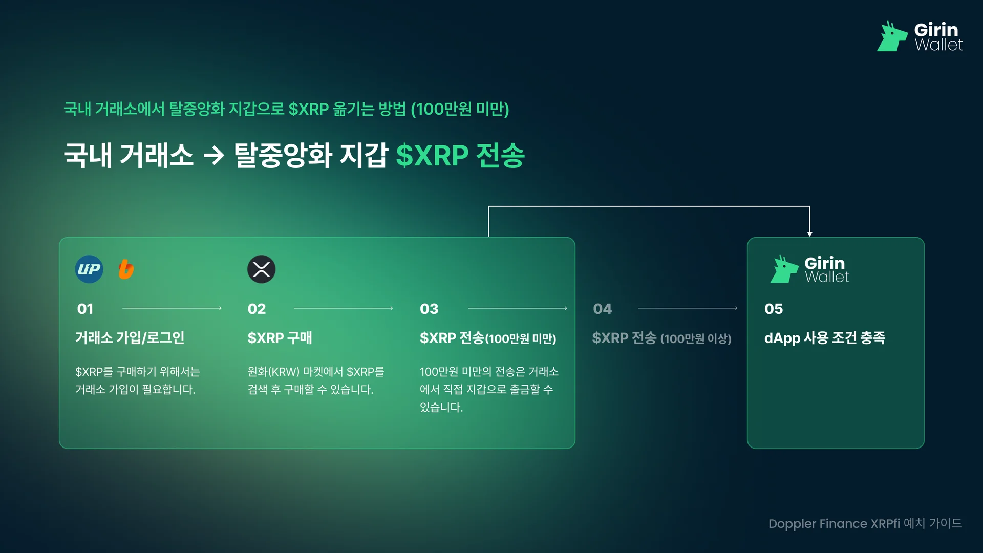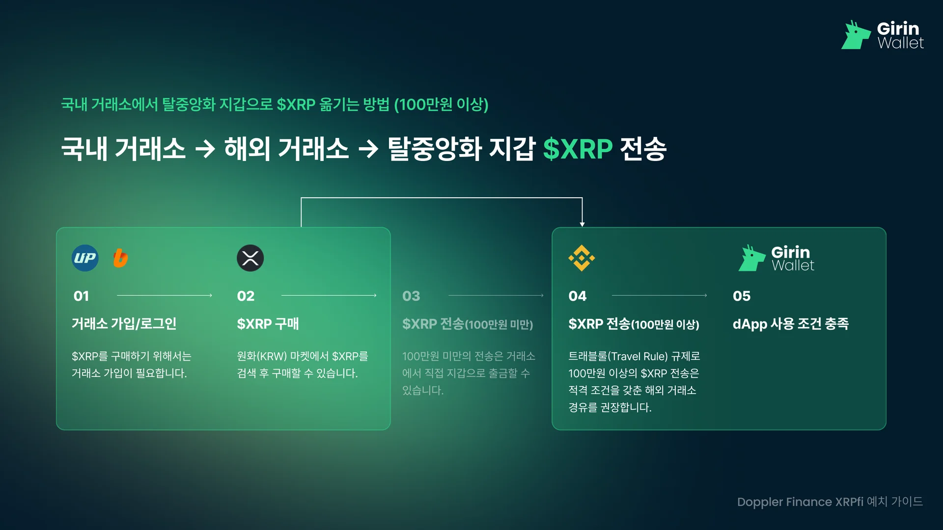 2. 국내/해외 거래소 → $XRP 구매 + 전송 → 기린 지갑