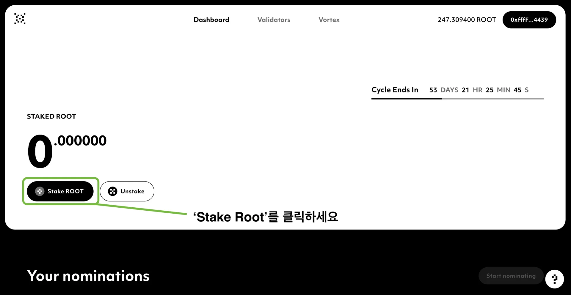 스테이킹한 $ROOT는 Slashing 위험에 노출될 수 있습니다. Validator 노드를 설정하고 운영 및 유지하는 데에는 기술적 이해와 투자가 필요합니다.