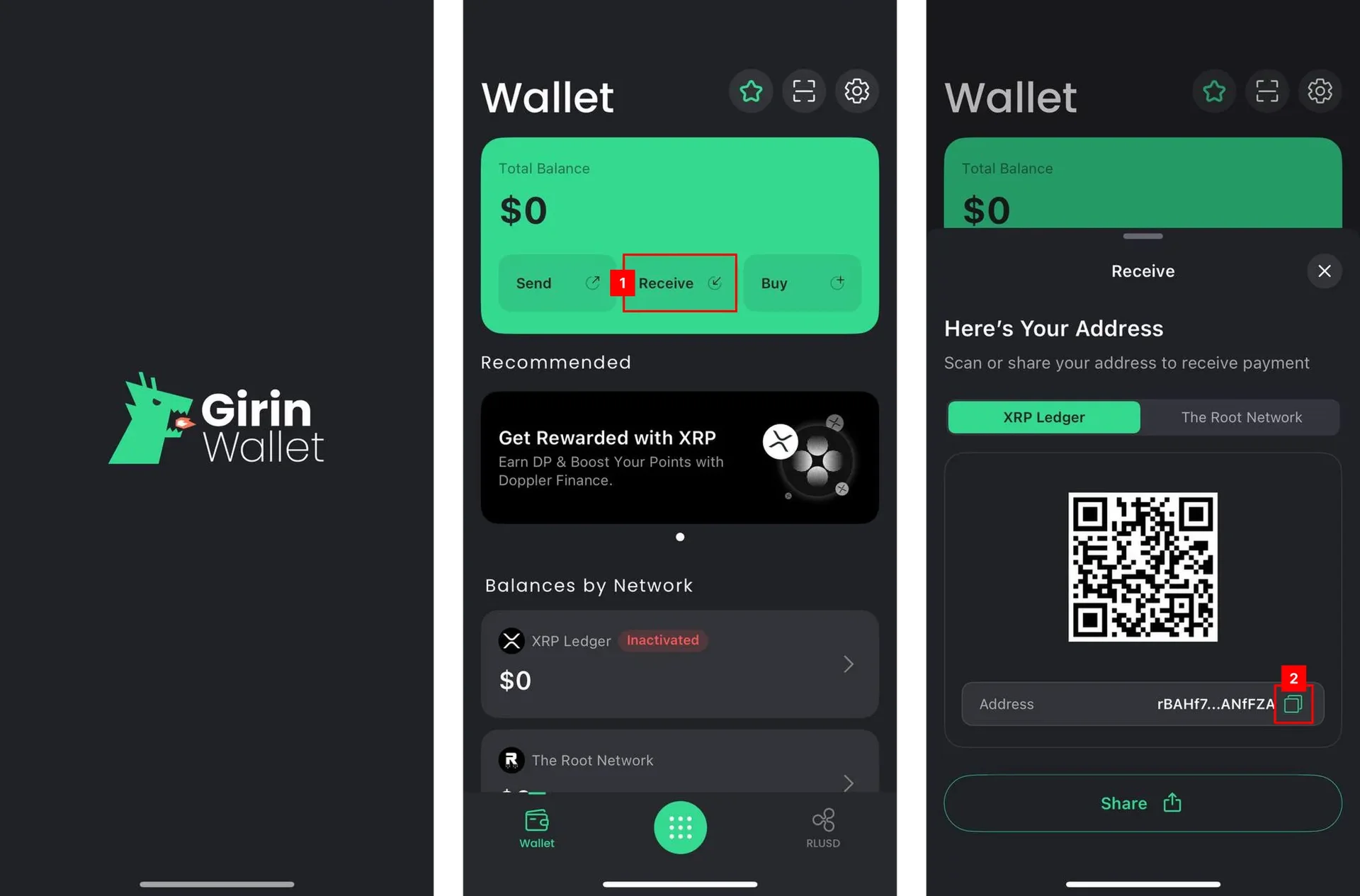 Open the Girin Wallet app and tap the "Receive" button