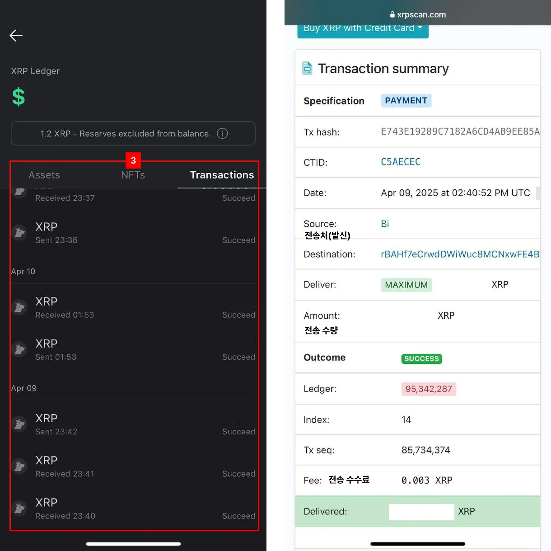 Tap the $XRP transaction you want to check