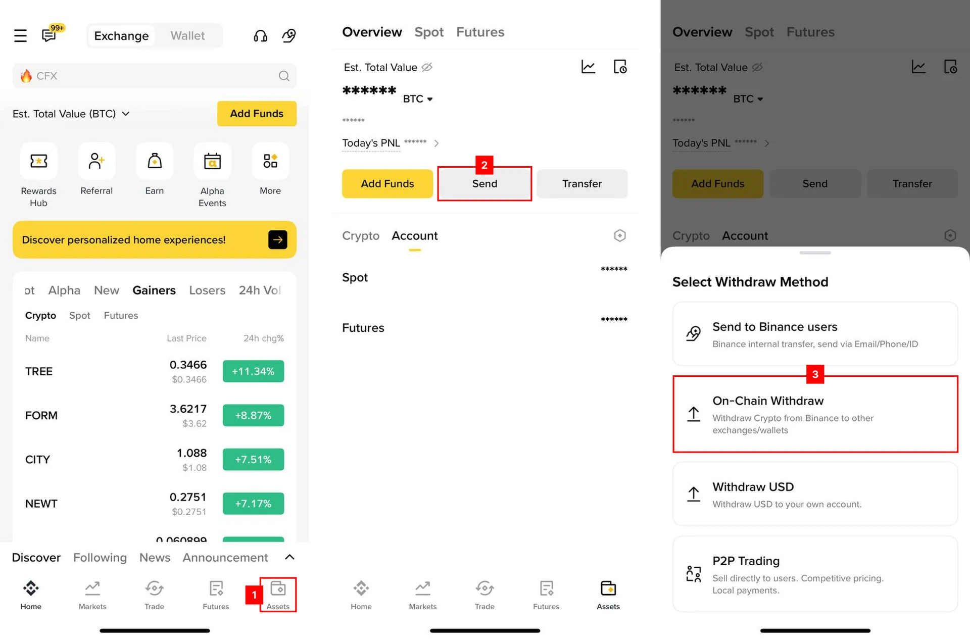 From the four withdrawal options, tap “On-Chain Withdraw.”