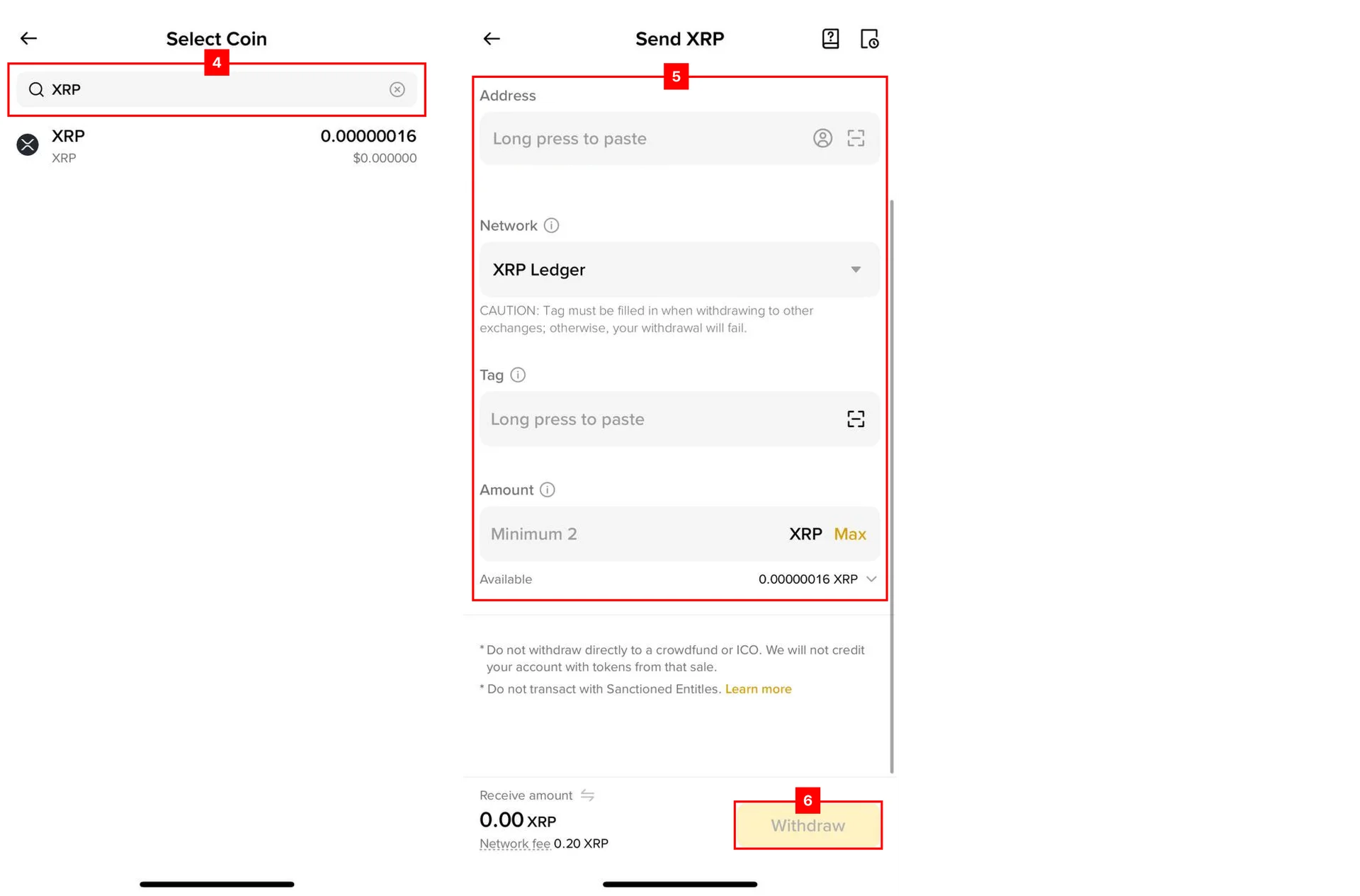 2. Open the Binance App and withdraw $XRP