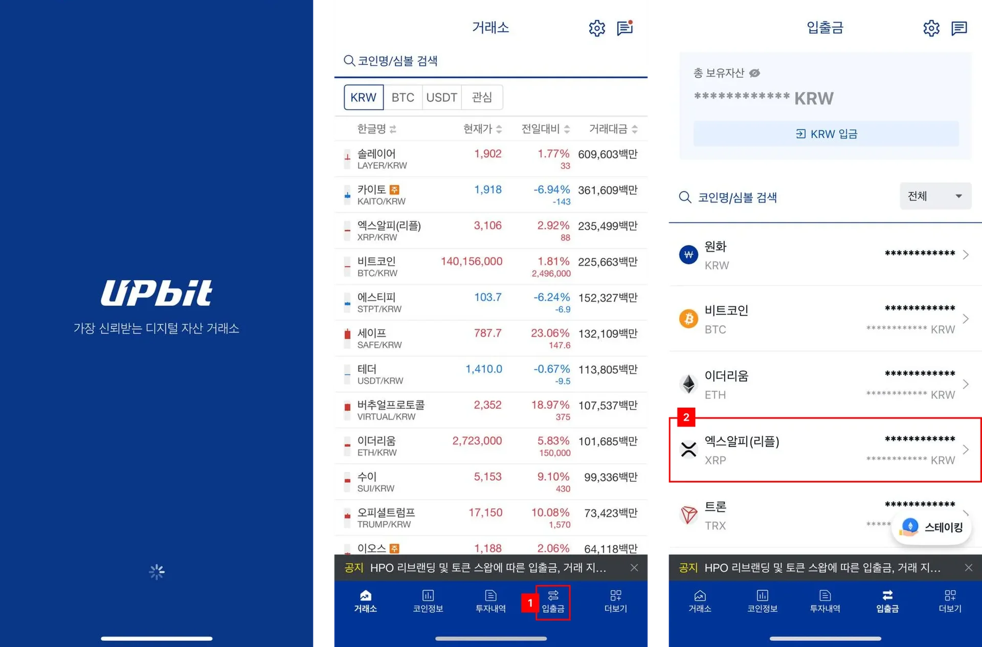 2. Open the Upbit App and withdraw $XRP from the "Deposit/Withdraw" tab
