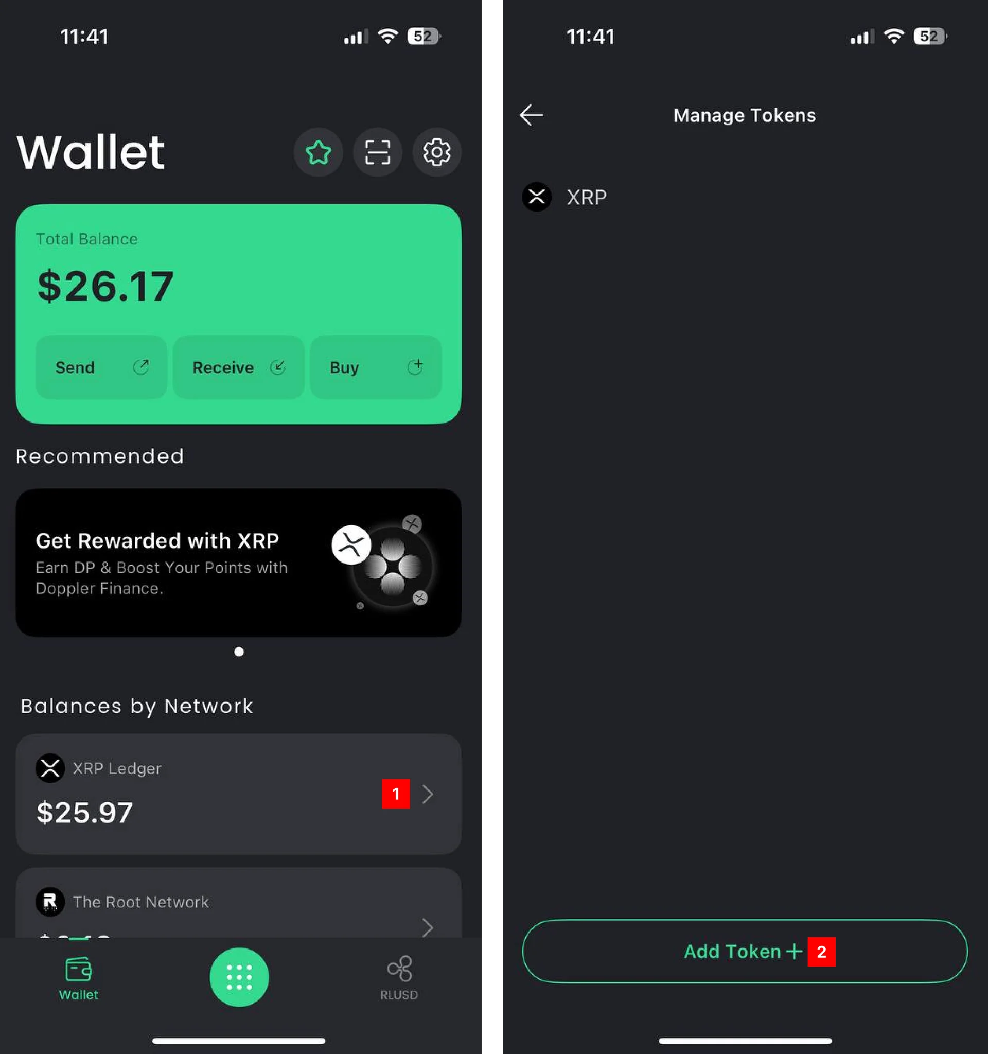 1) Click “Add Token” from a wallet activated on the XRPL