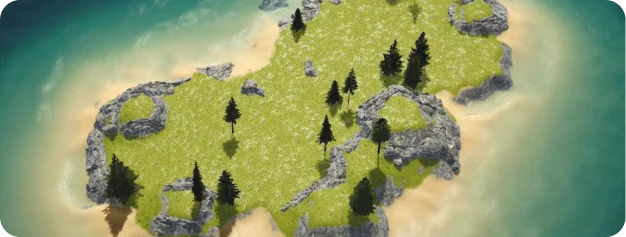 Origin Island is the central world where gameplay begins. Players can gather resources, generate Energy, and maximize production efficiency by strategically managing their in-game assets.