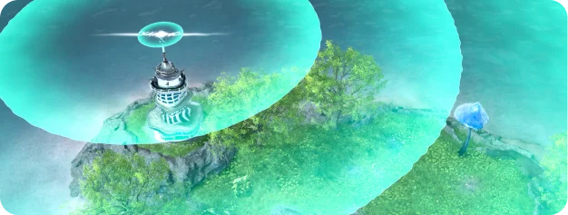 SurrealScape interacts with various Prysm on Origin Island to boost resource production. Larger SurrealScape sizes result in greater resource production rates: 1% for 1x1, 2% for 2x2, 3% for 3x3, and 4% for 4x4. Additionally, SurrealScape increases the total number of Prysm that can be installed.