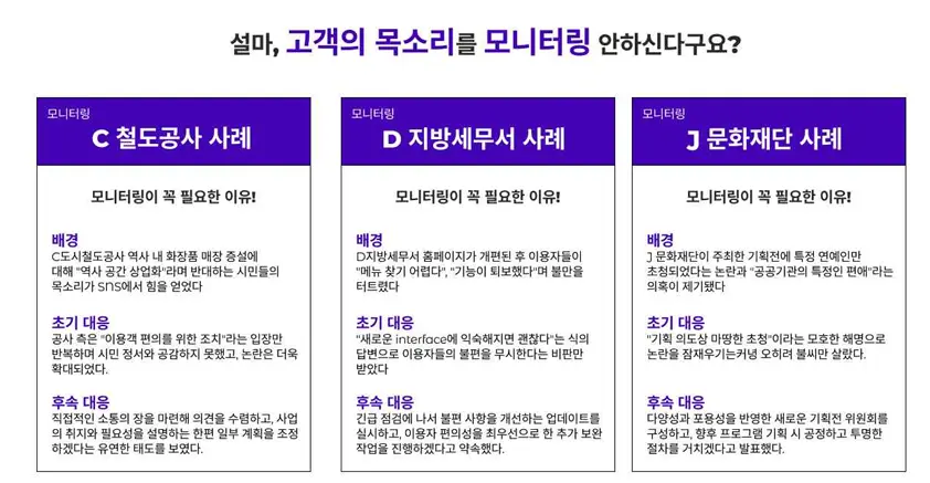 리뷰, 커뮤니티, SNS, 뉴스 등 온라인에 남겨진 고객의 의견을 수집하고 분석하여