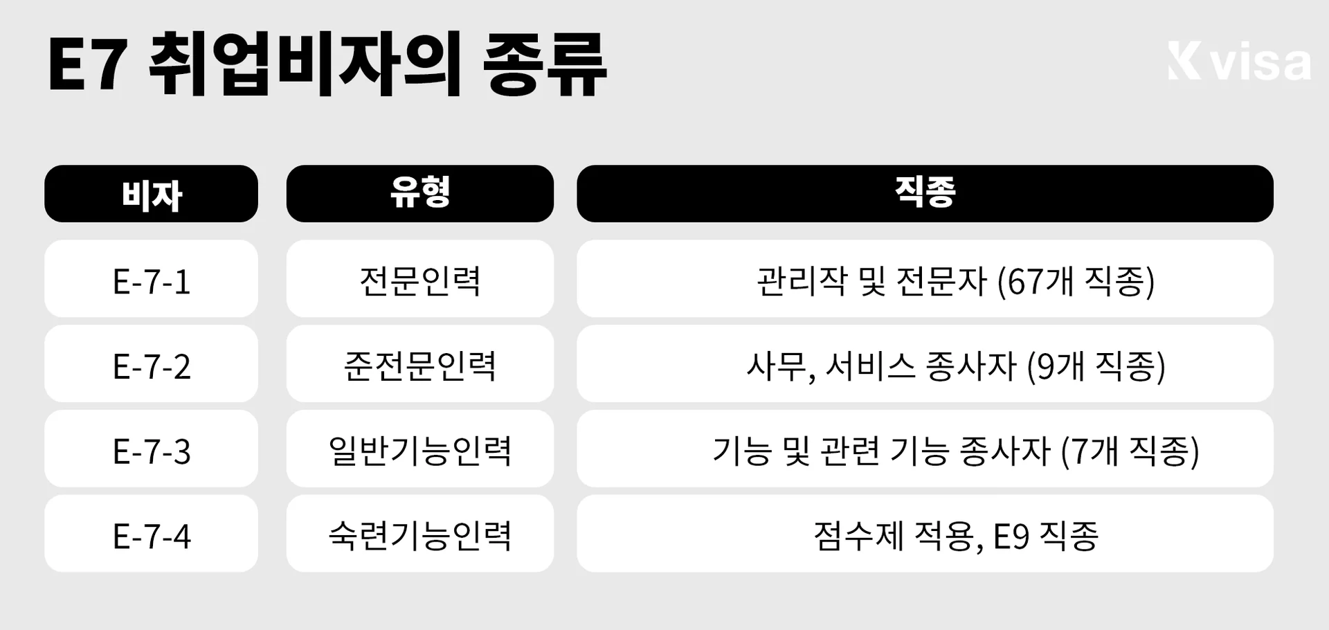 1. 우리 회사에 필요한 비자는? (E7 비자의 종류)