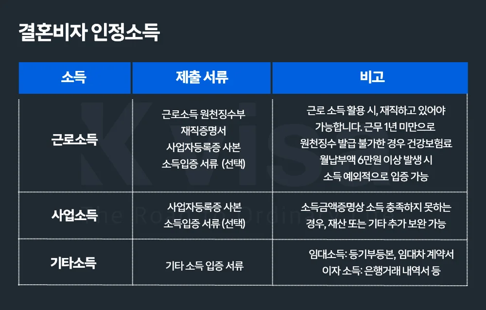 한국인 배우자의 소득은 지난 1년간 취득한 다음 항목의 합산으로 인정됩니다.