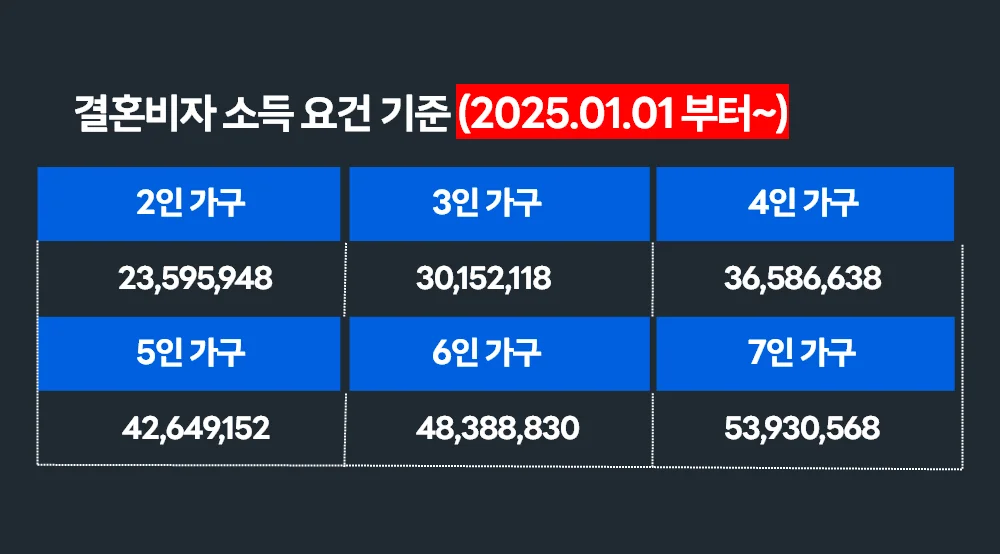 2025년도 F6 국제결혼비자 소득요건 변경 사항 정리 (2025년 1월 1일부터 적용)