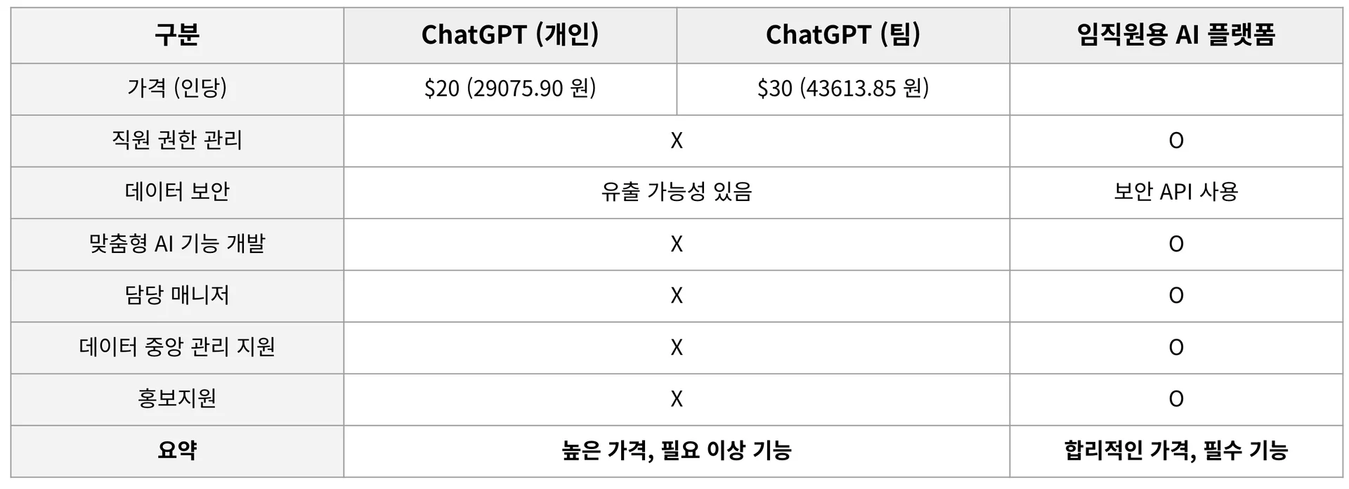 1. 합리적인 비용으로 임직원 전용 AI 플랫폼 도입