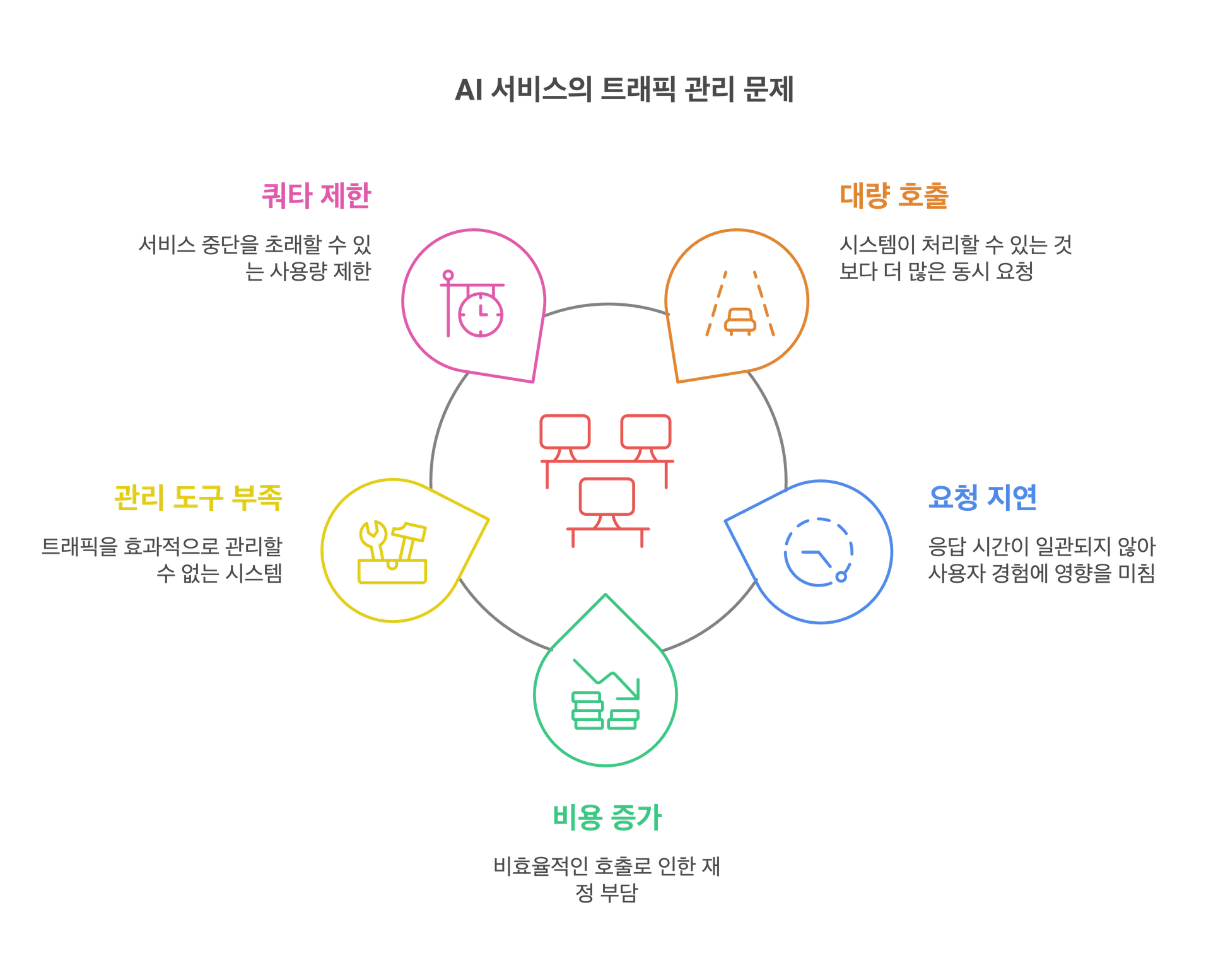 예를 들어, 한 고객사의 사례를 보면, 초기에는 사용자 수가 일정 수준에서 머물렀지만, 특정 시점 이후 폭발적으로 증가하면서 트래픽 관리 문제가 발생했습니다. MAU가 급증하거나 특정 시간대에 사용량이 몰리면 외부 API 호출의 병목 현상, 예측 불가능한 지연, 비용 폭증 같은 문제들이 서비스를 위협할 수 있습니다.