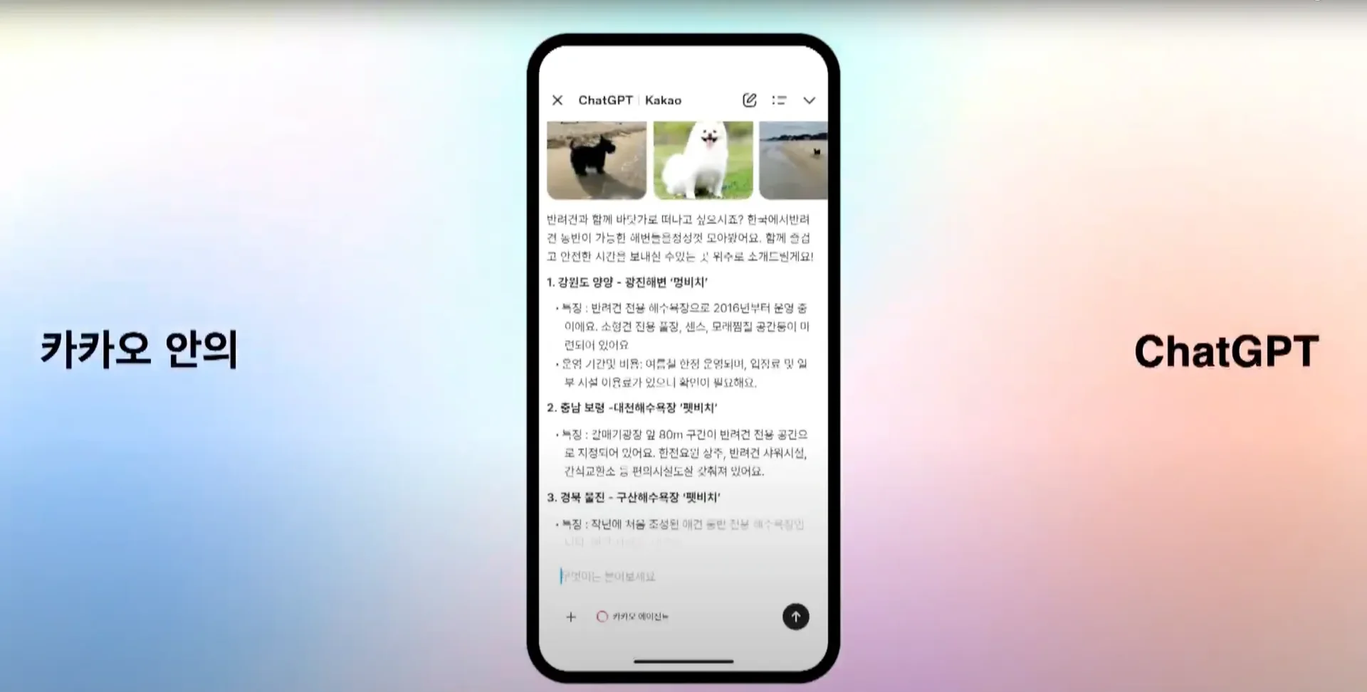 특히 ChatGPT 답변을 곧바로 카카오톡 채팅으로 공유할 수 있다는 점은 일상 속 활용도를 크게 높여줄 기능이라 생각됩니다.