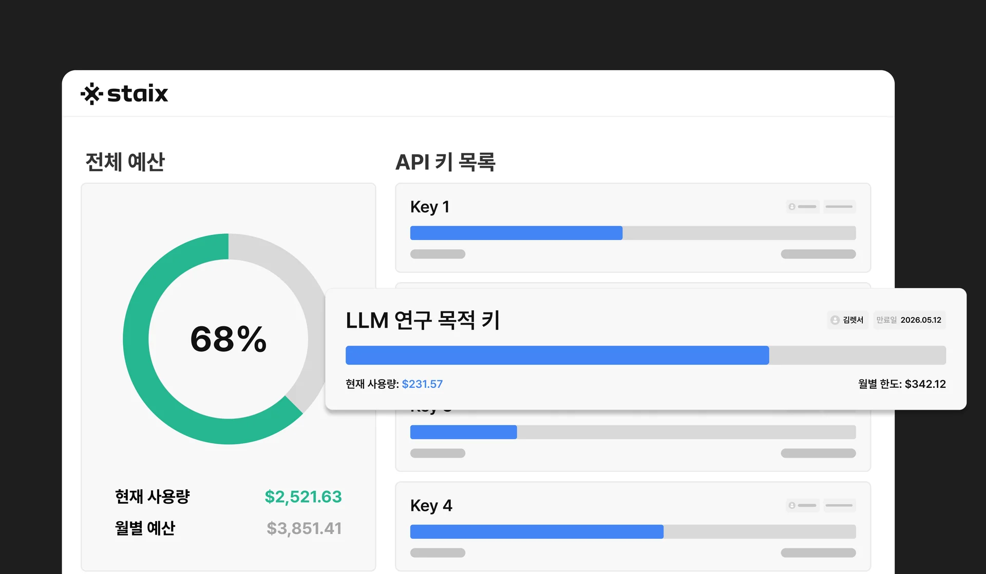 AI ๋ชจ๋ธ์ ๊ฐ์๋ก ๋ค์ํด์ง๊ณ , ํ ๋จ์๋ก ์ฌ๋ฌ API Key๋ฅผ ์ฐ๋ค ๋ณด๋ฉด ์ด๋์ ๋น์ฉ์ด ํญ์ฆํ ์ง ์์ธกํ๊ธฐ ์ด๋ ต์ต๋๋ค. ์ด์ ๊น์ง๋ ๋จ์ ์ผ์ด, ์์นจ์ ๋๋จ๋ฉด ๋ฐ๋ก ์ฐ๋ฆฌ ํ ์ด์ผ๊ธฐ๊ฐ ๋ ์ ์์ต๋๋ค.
