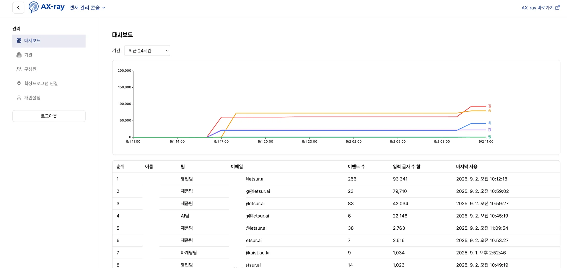 실시간 모니터링: 팀별·개인별 AI 사용량을 한눈에 확인