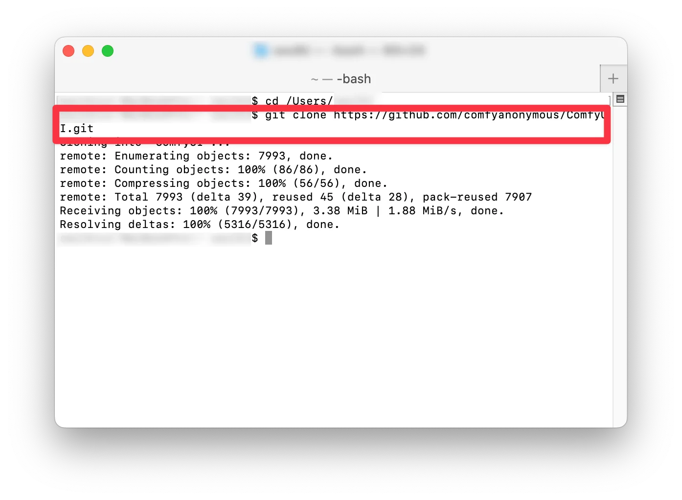 git clone https://github.com/comfyanonymous/ComfyUI.git을 입력하고 실행합니다.지정한 폴더에 파일이 설치되었는지 확인합니다.