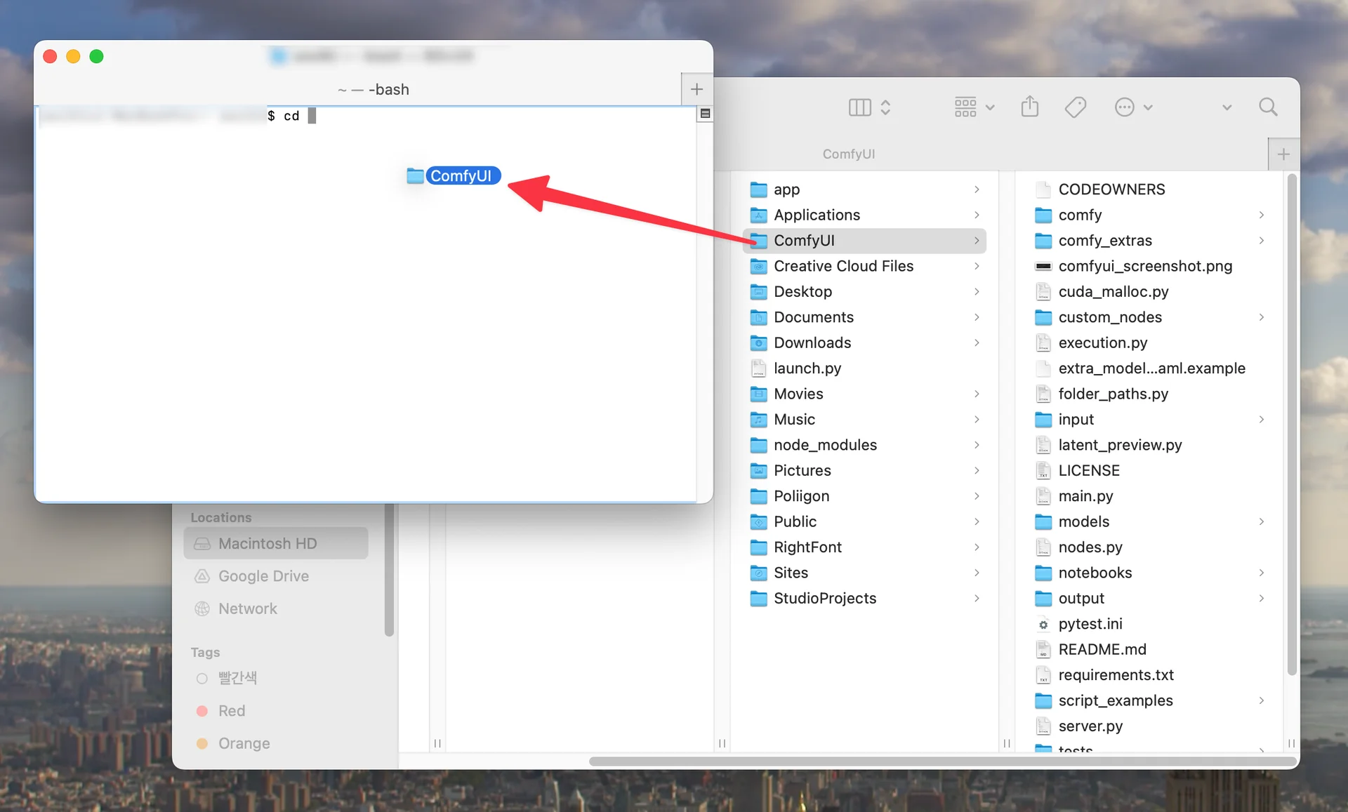 터미널에서 ComfyUI 폴더로 이동하기