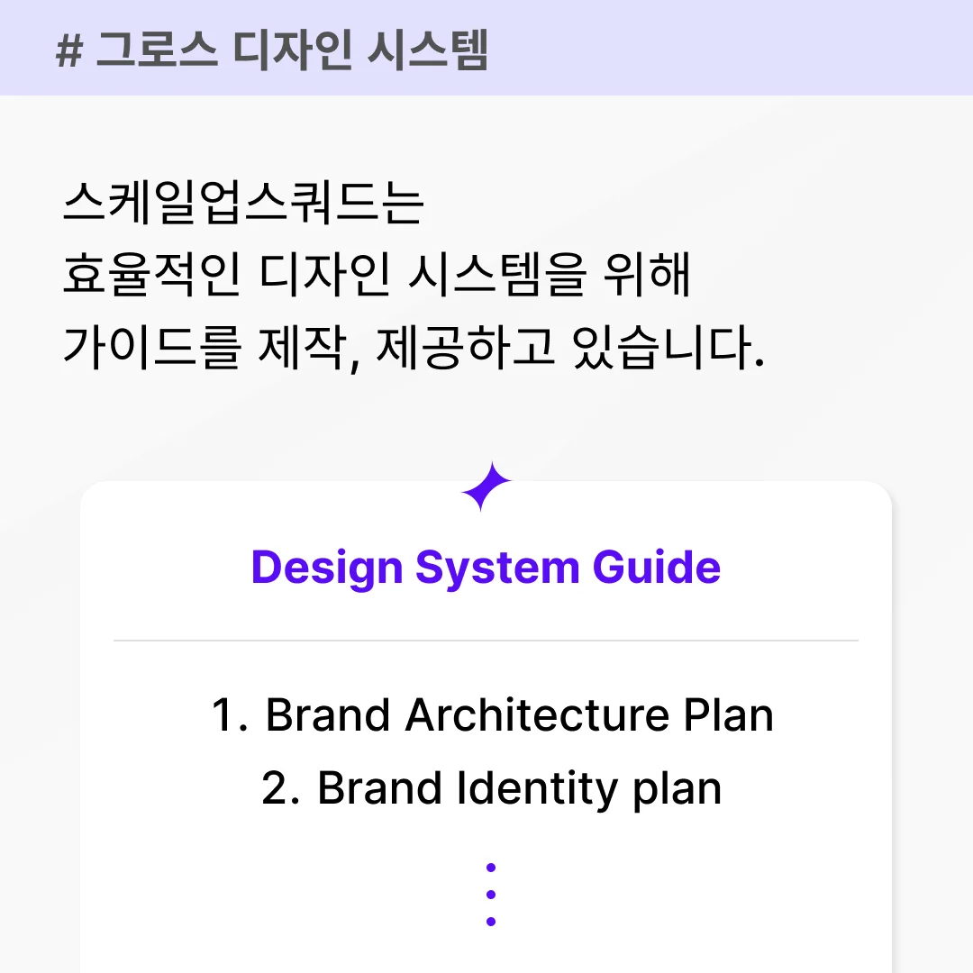 스케일업스쿼드는 효율적인 디자인 시스템을 위해 가이드를 제작, 제공하고 있습니다.