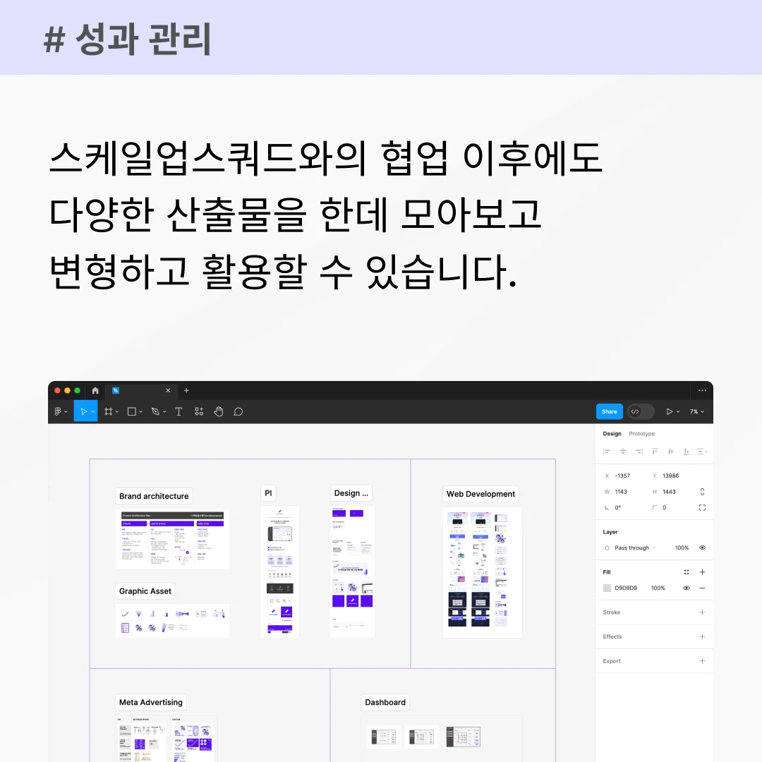 스케일업스쿼드와의 협업 이후에도 다양한 산출물을 한데 모아보고 변형하고 활용할 수 있습니다.
