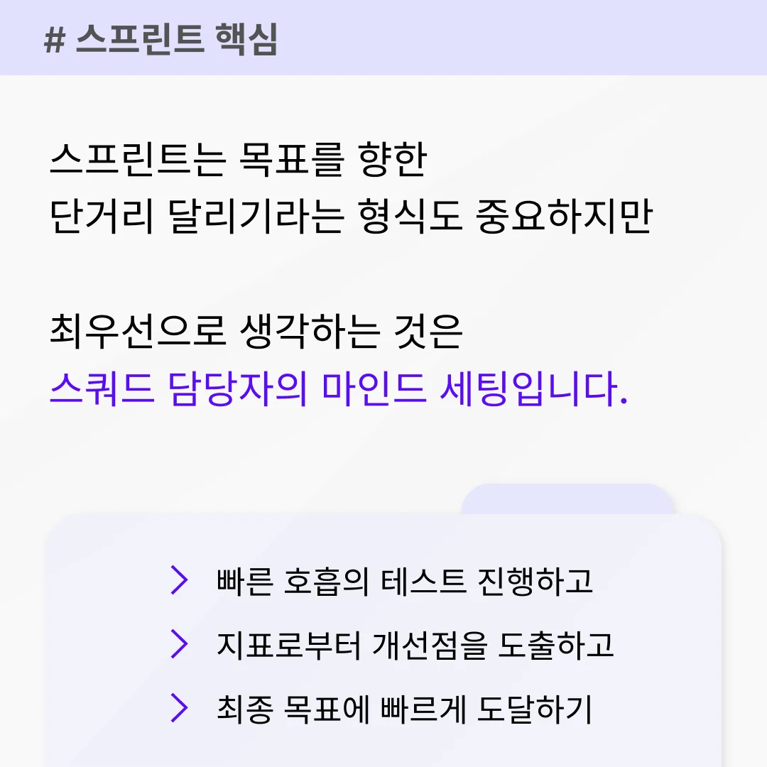 스프린트는 목표를 향한 단거리 달리기라는 형식도 중요하지만 최우선으로 생각하는 것은