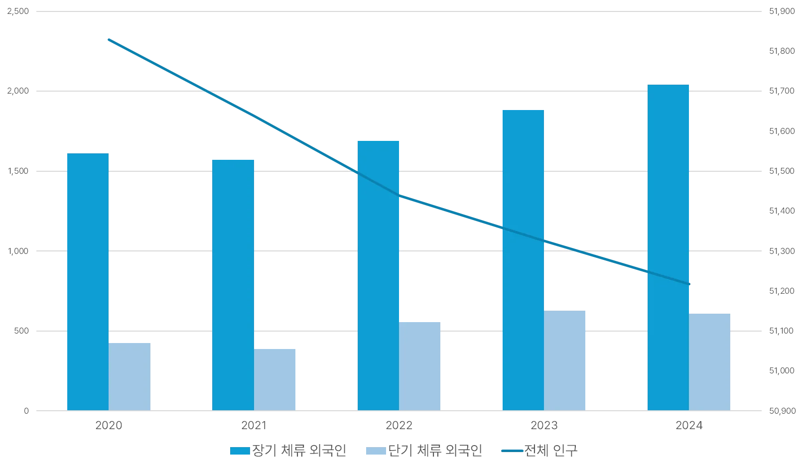 국내 체류 외국인 인구수는 지속적으로 증가하고 있으며, 단순 방문을 넘어 장기 거주와 생활 정착 중심의 수요가 본격화되고 있습니다. 이에 따라 외국인 대상 특화 서비스 시장은 정보, 언어, 주거, 일자리, 커뮤니티 등 다양한 생활 영역 전반으로 빠르게 확장되고 있습니다. 특히 정책 환경과 산업 구조 변화에 따라, 외국인을 독립적인 소비자군으로 정의하고자 하는 시장의 움직임은 더욱 가속화될 것으로 전망됩니다.