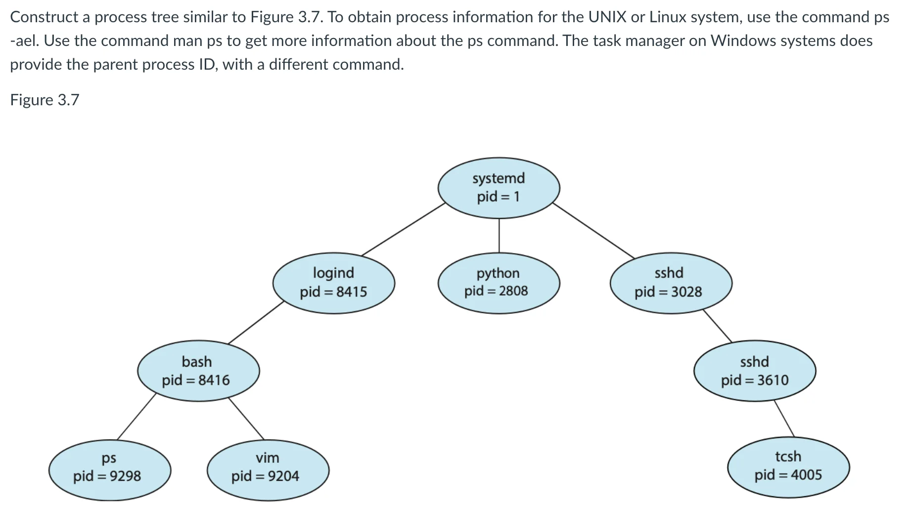 Linux는 그 종류와 버전 별로 시스템 가동을 위해 필요한 system process[6]를 가지고 있으며 루트 시스템 프로세스인 systemd(혹은 init)[7]을 사용하여 부팅 시에 호출하게 됩니다. 또한 모든 프로세스는 단일 트리 구조로서 부모가 자식에게 일련의 설정값(PATH[D1], Open FileDescriptor) 등을 전달하는 구조를 가집니다.