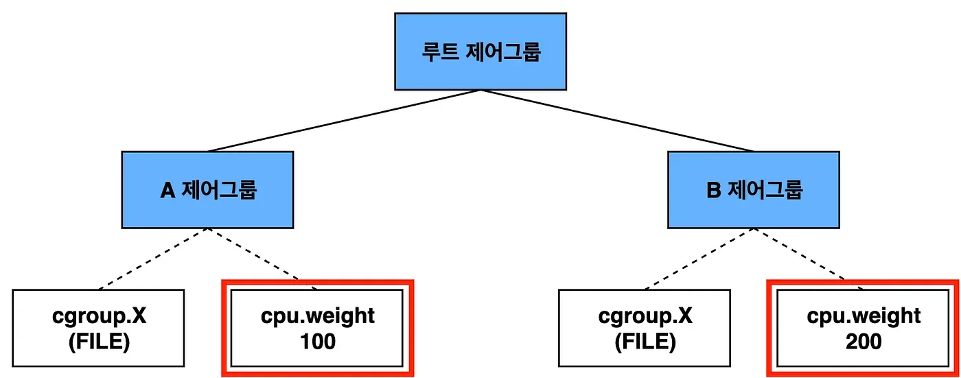 cpu.weight는 두 프로세스 간의 CPU 점유율의 비율을 제어할 수 있고