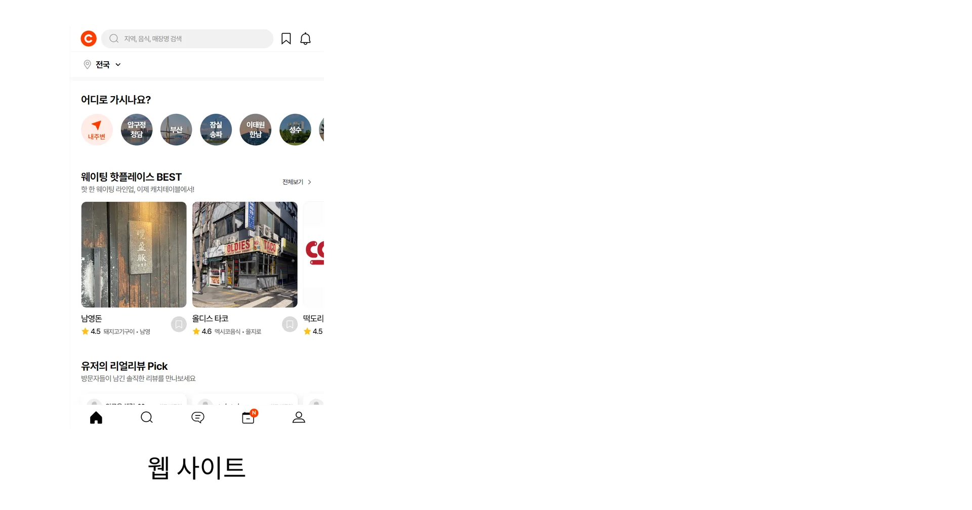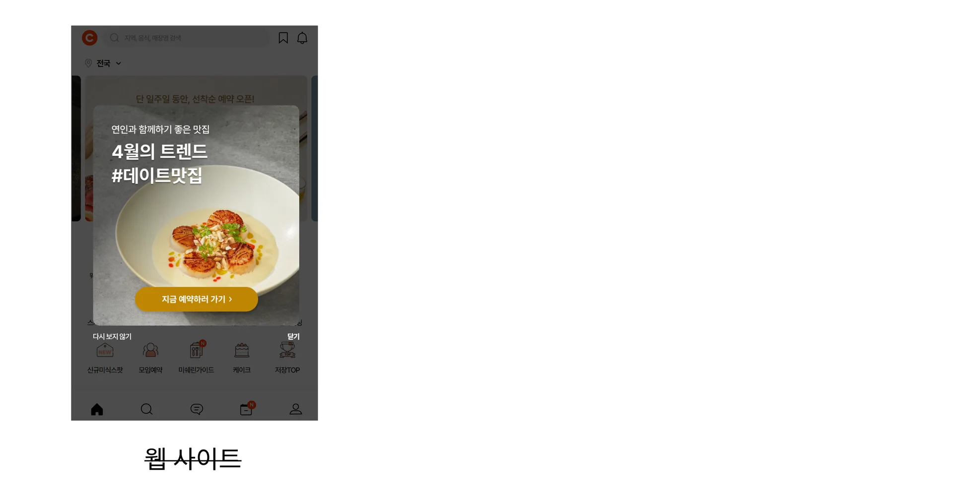 아래는 전화 없이 편리하게 레스토랑을 예약할 수 있는 캐치 테이블의 메인 홈입니다.