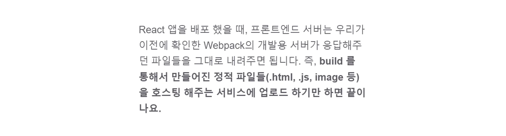 React는 정적 콘텐츠와 관계된 HTML, CSS, JavaScript 등을 한꺼번에 빌드합니다.