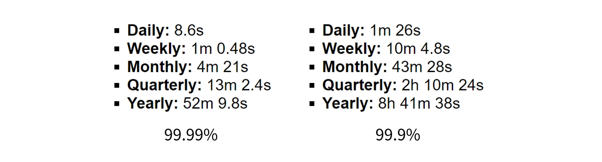 일/주/월/분기/연도 별로 각각 다음과 같이 다운타임 발생 가능