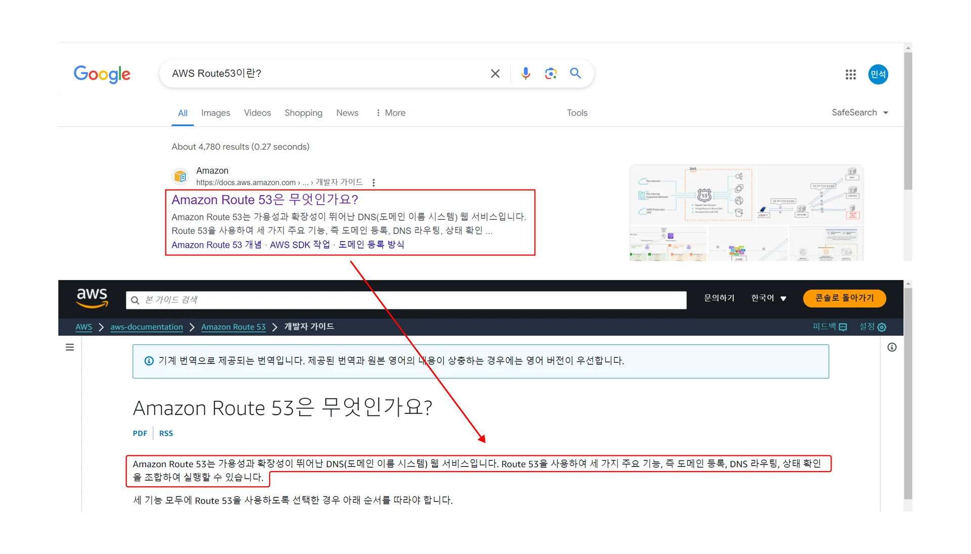 역시 Route53에 대해서 잘 모르기 때문에, “AWS Route53이란?”이라고 검색해보았습니다.
