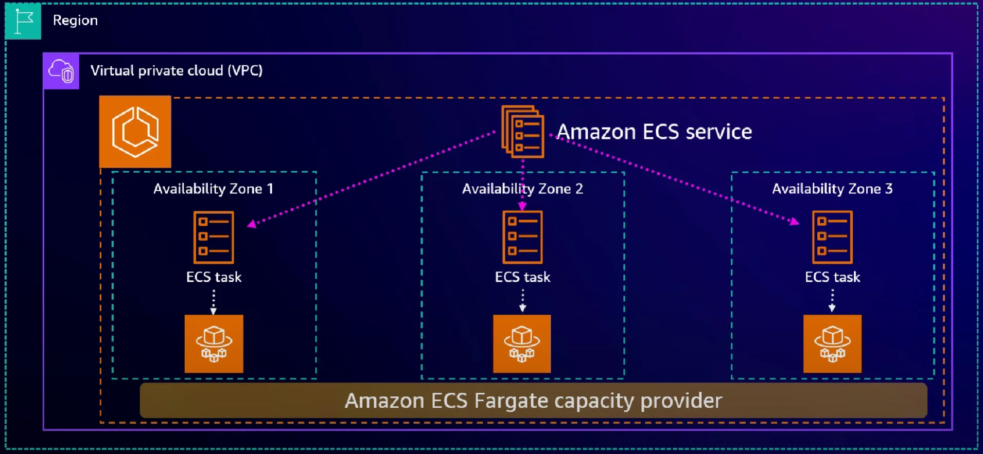Amazon ECS 컨트롤 플레인는 최소 3개 이상의 가용 영역에 배포된다.