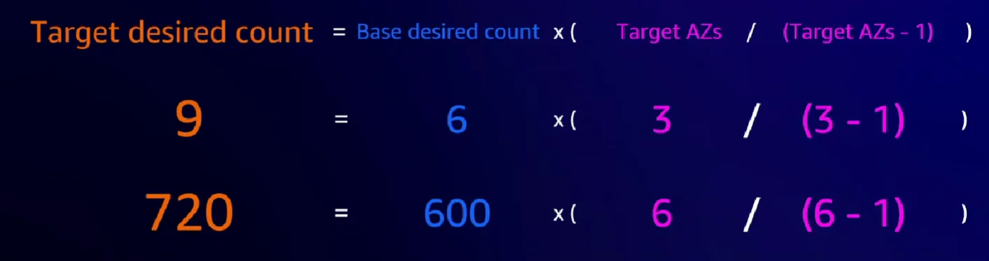 Amazon ECS 컨트롤 플레인의 기본 선언 갯수가 6일 때, 이를 기준으로 다음의 공식으로 목표 선언 갯수가 정해집니다.
