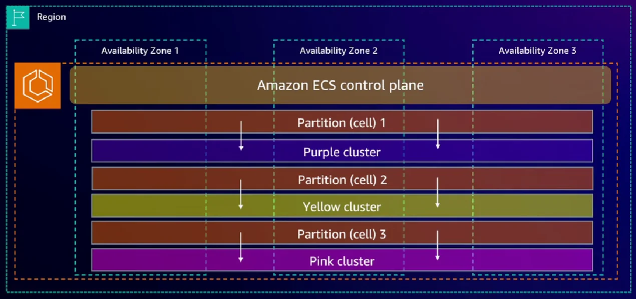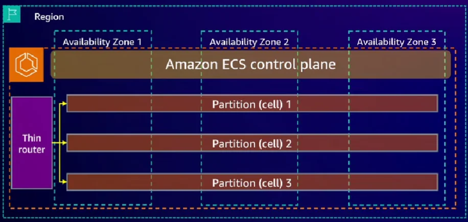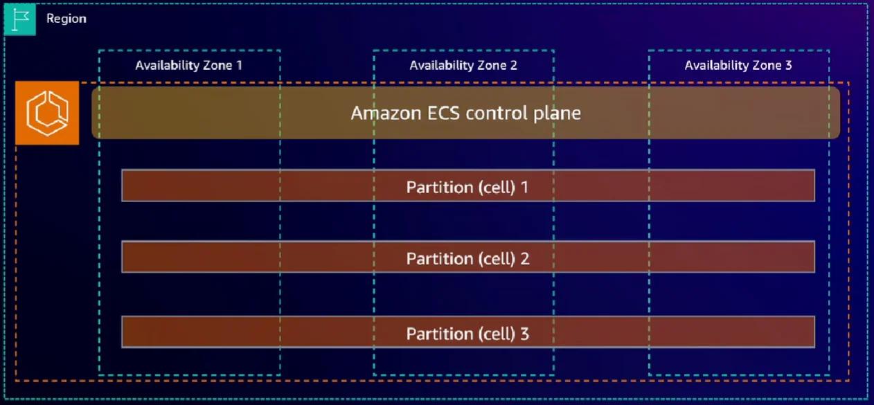 Amazon ECS 컨트롤 플레인은 매우 얇고 작은 파티셔닝을 이용해서 컨트롤 플레인을 분할하고 고립하여 관리합니다.