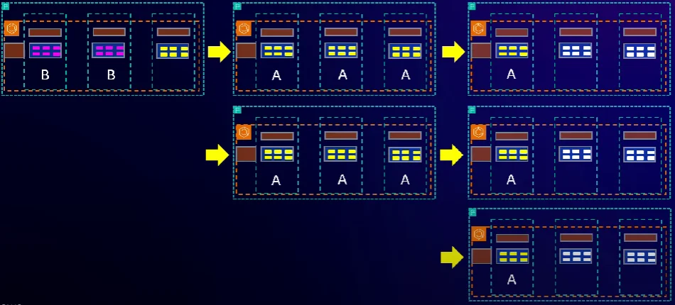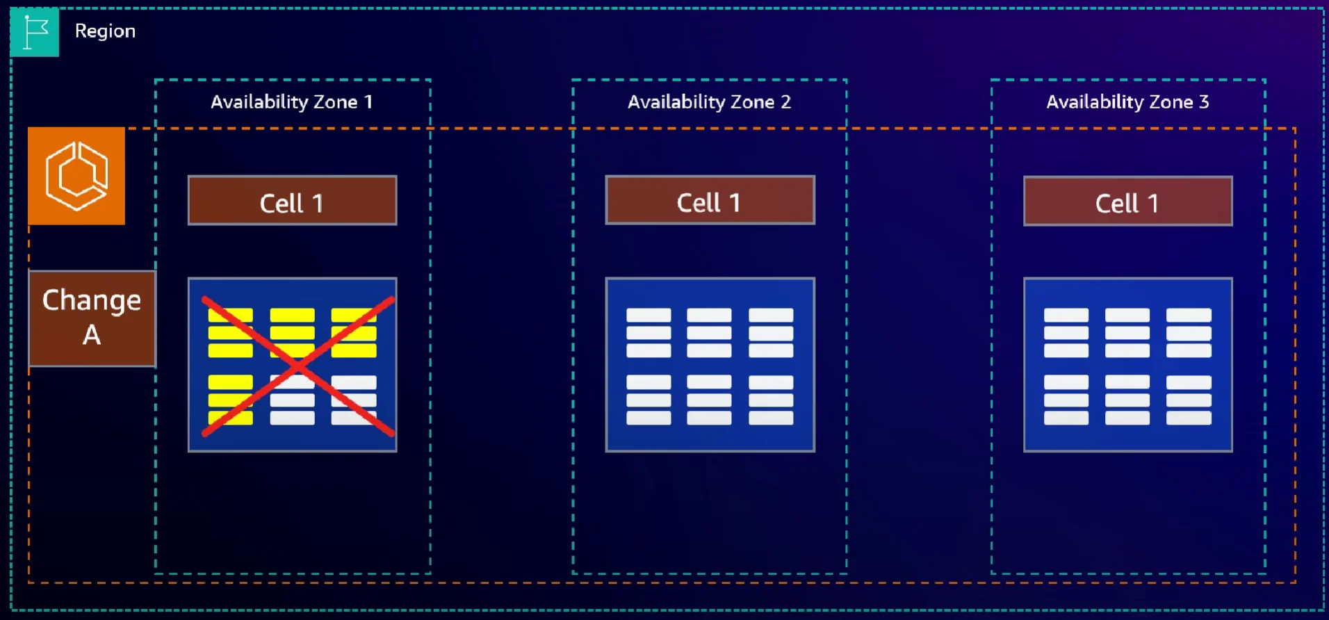 이런 경우, 코드 변경 사항 Change A가 발생하면, 가용 영역 1부터 3까지 어떤 순서로 배포가 될까요?