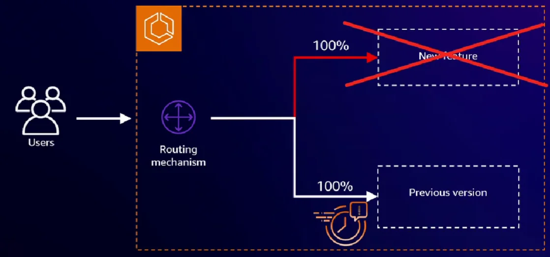 또한 개별 버전에 대한 베이크 타임(Bake Time) 단계에서의 장애가 발생 시, 네트워크 레벨에서도 자동으로 기존 버전(Previous Version)으로 라우팅됩니다.