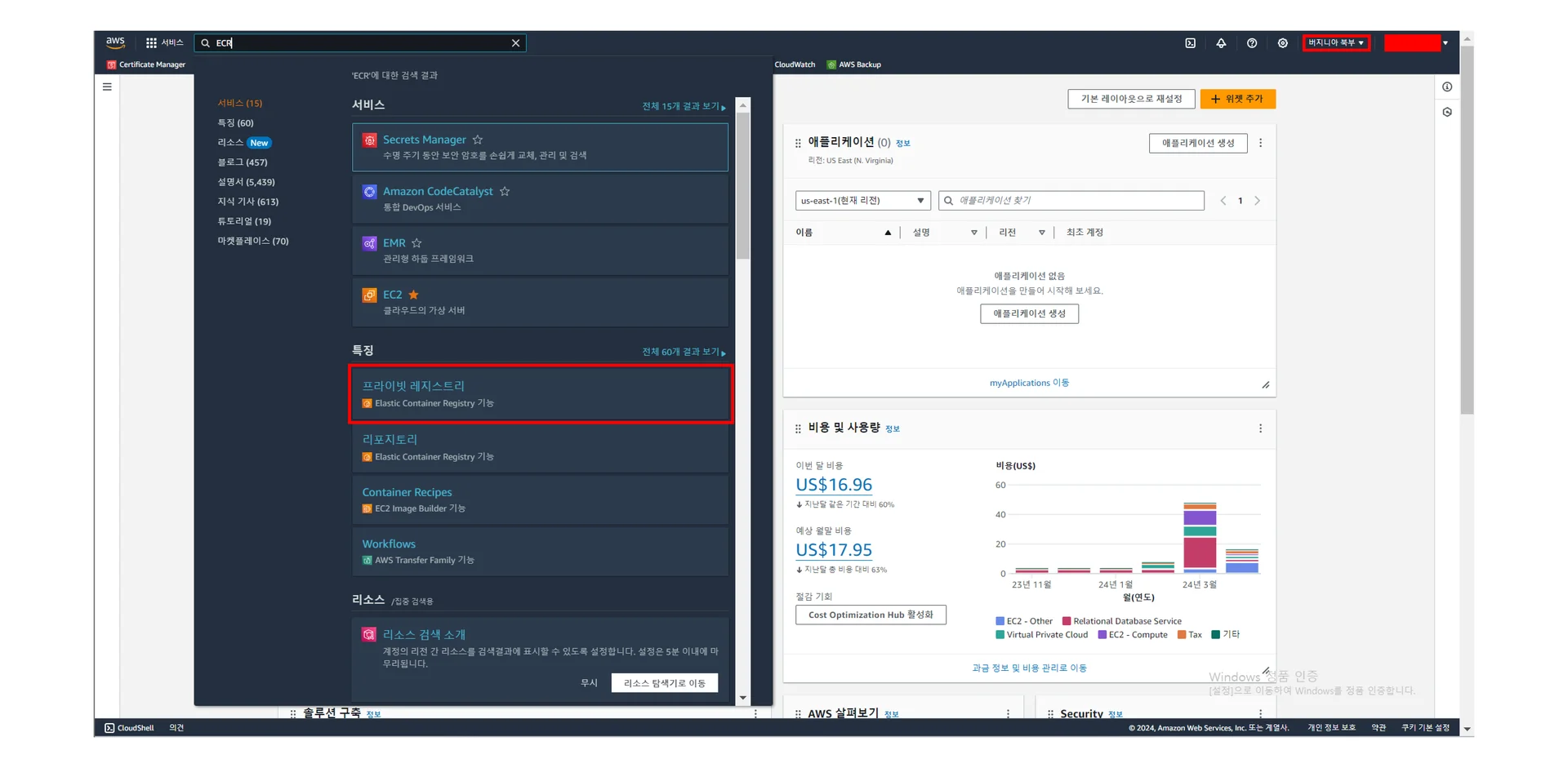 AWS Console에서 ECR 검색해서 클릭하기