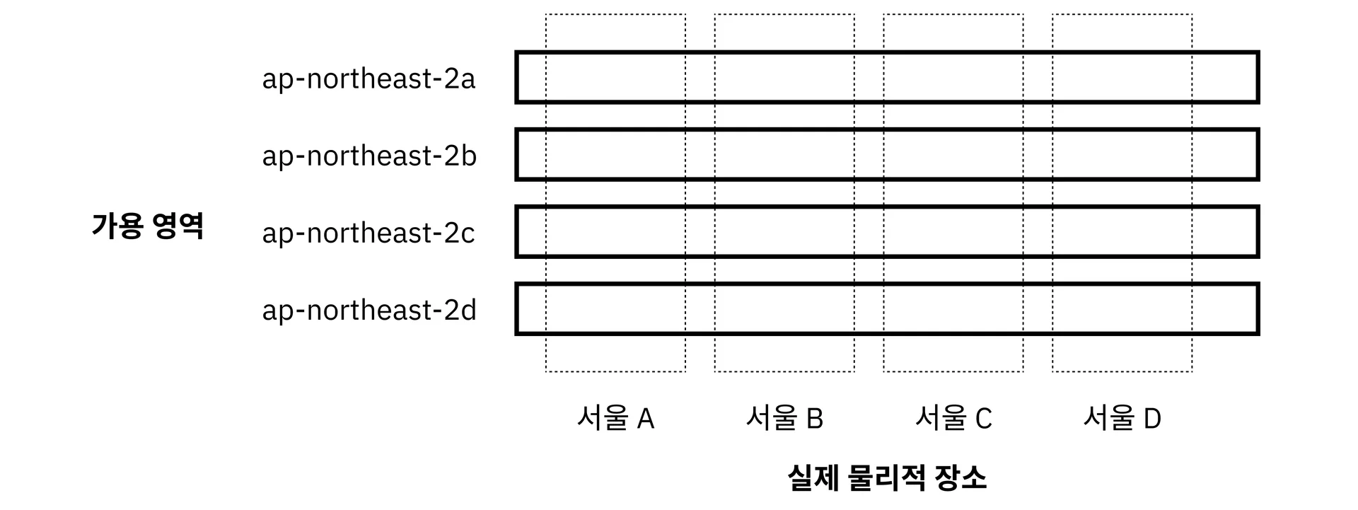 즉, 서울에 4개의 물리적인 장소가 별도로 존재하며 4개의 AZ가 존재합니다.