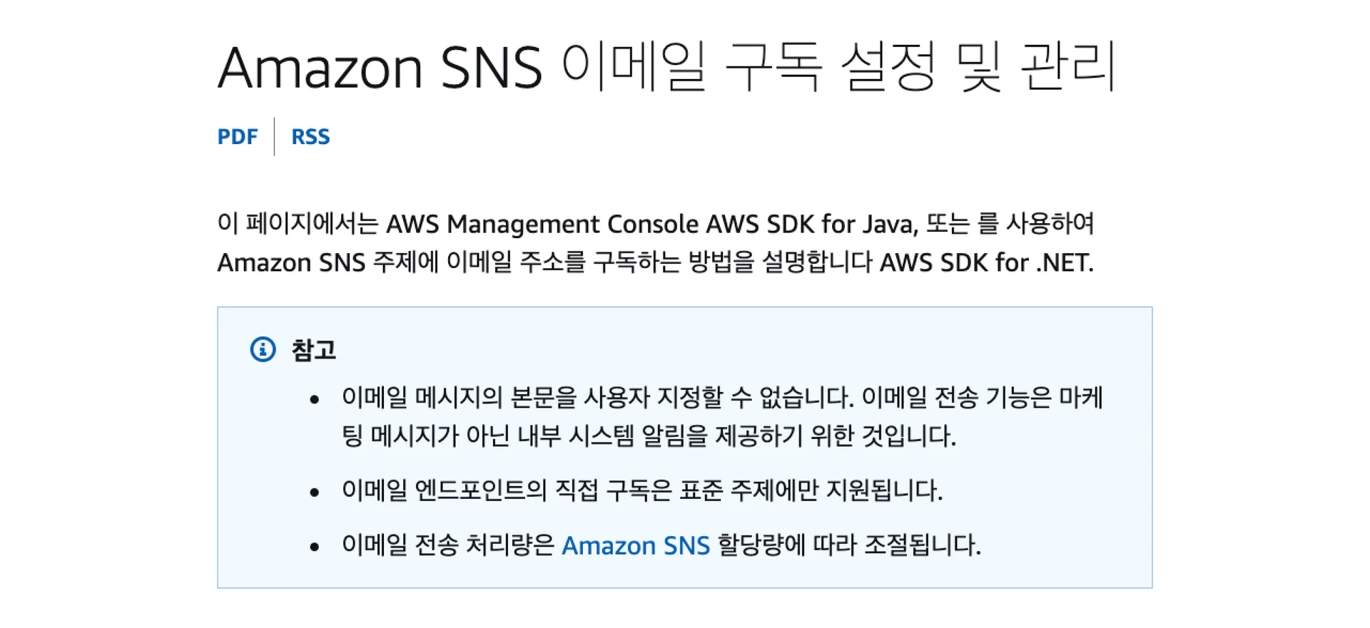 SNS Subscription에서는 EMAIL 프로토콜을 기반으로 메일을 전송합니다.